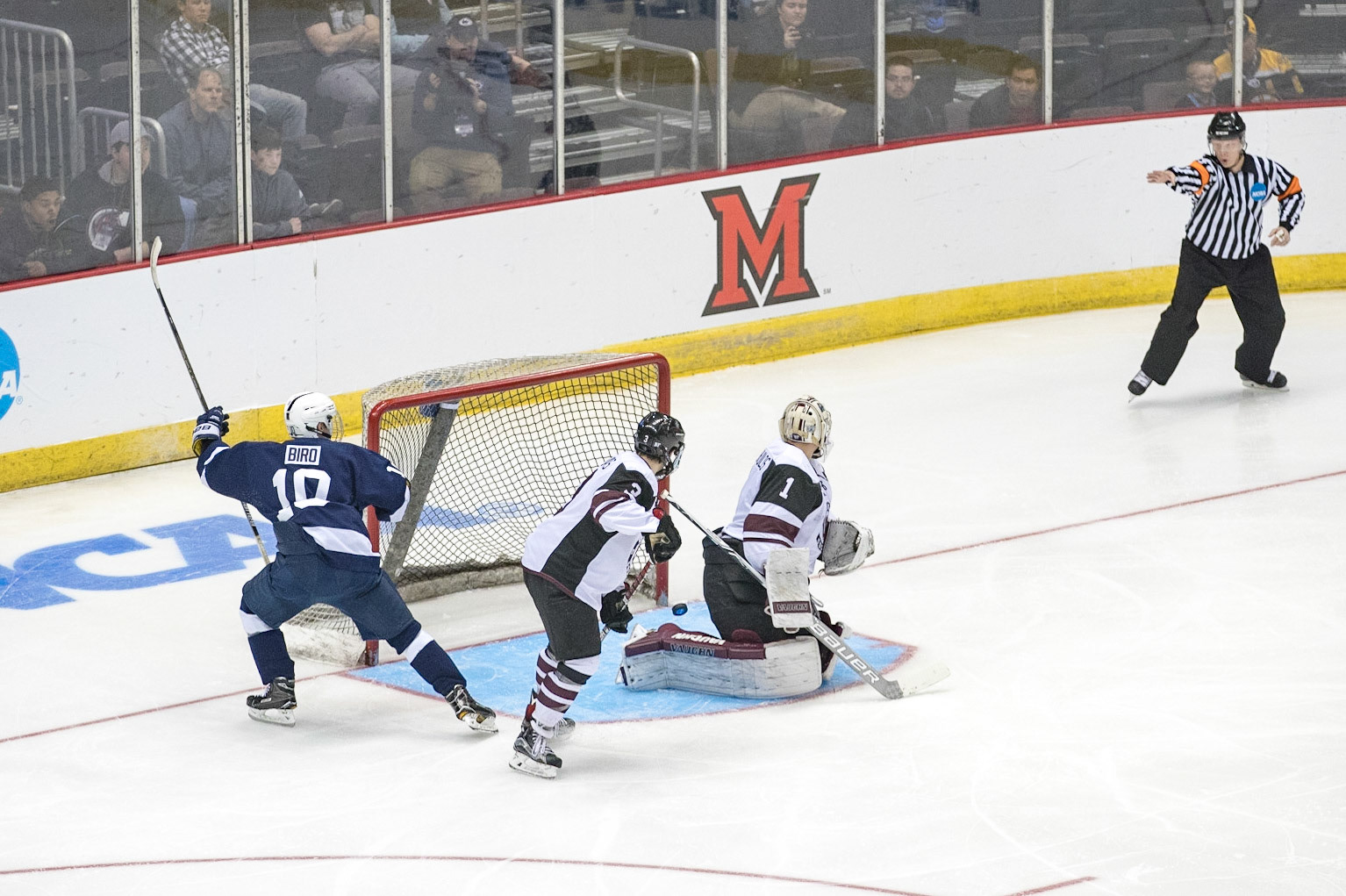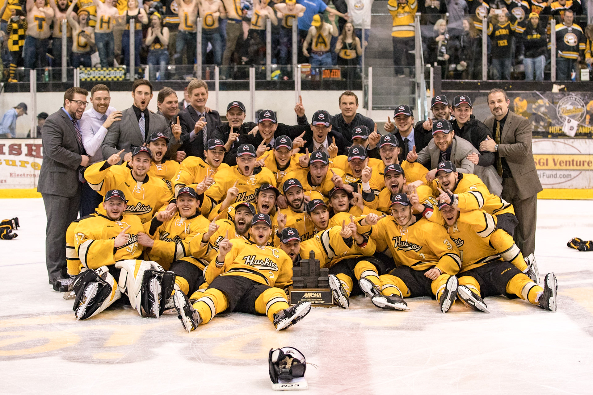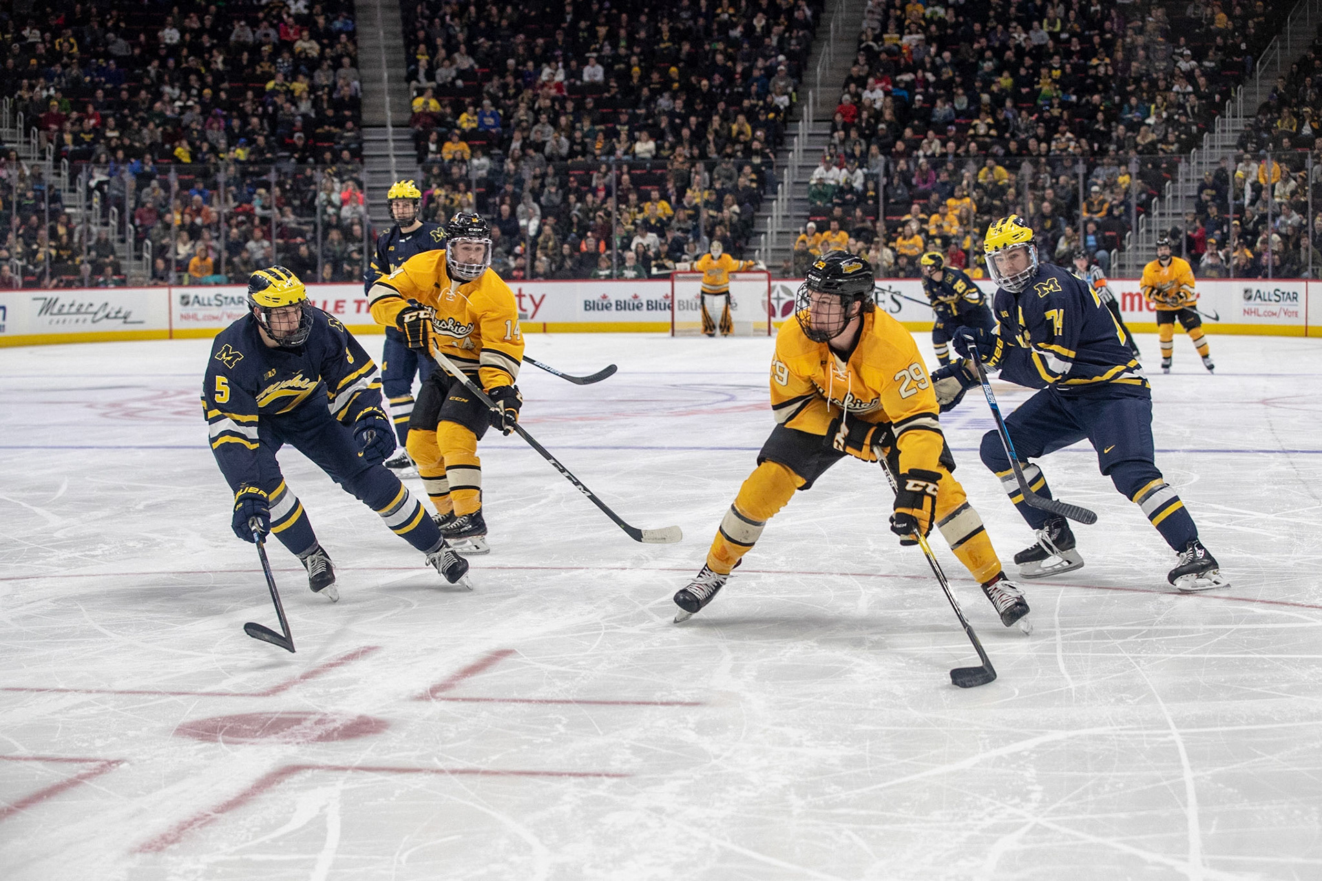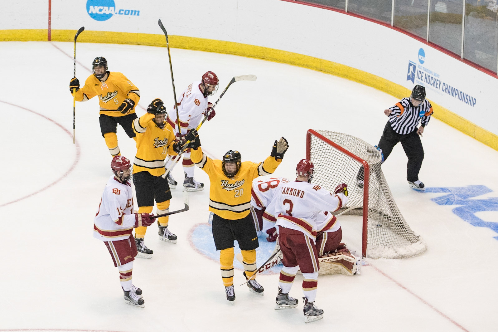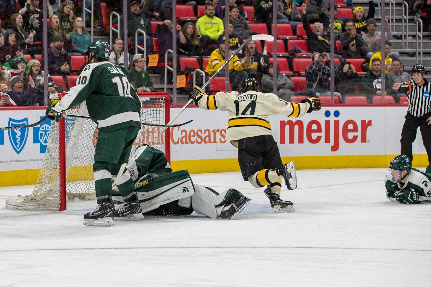 during Saturday night's game at the John MacInnes Student Ice Arena in Houghton Michigan.